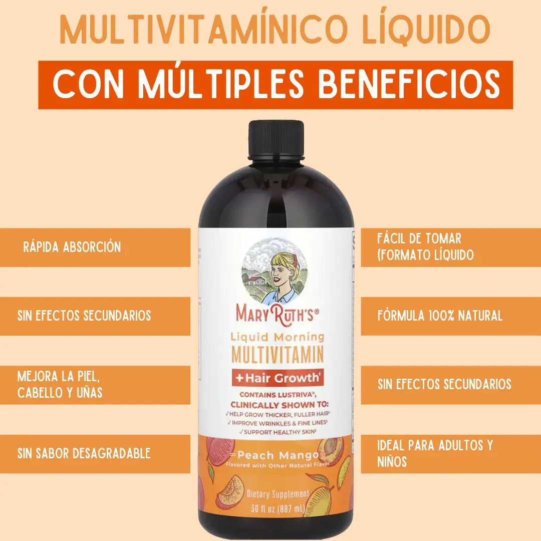 La frecuencia con la que se debe tomar el multivitamínico MaryRuth'sdepende del producto específico y de las indicaciones de uso.La mayoría de los productos de MaryRuth's, como el multivitamínico líquido para mujeres, se recomienda tomar una vez al día, siguiendo la dosis indicada en el envase o las indicaciones de un profesional de la salud.Es importante leer la etiqueta del producto específico que estés utilizando para conocer la dosis correcta y cualquier recomendación específica.